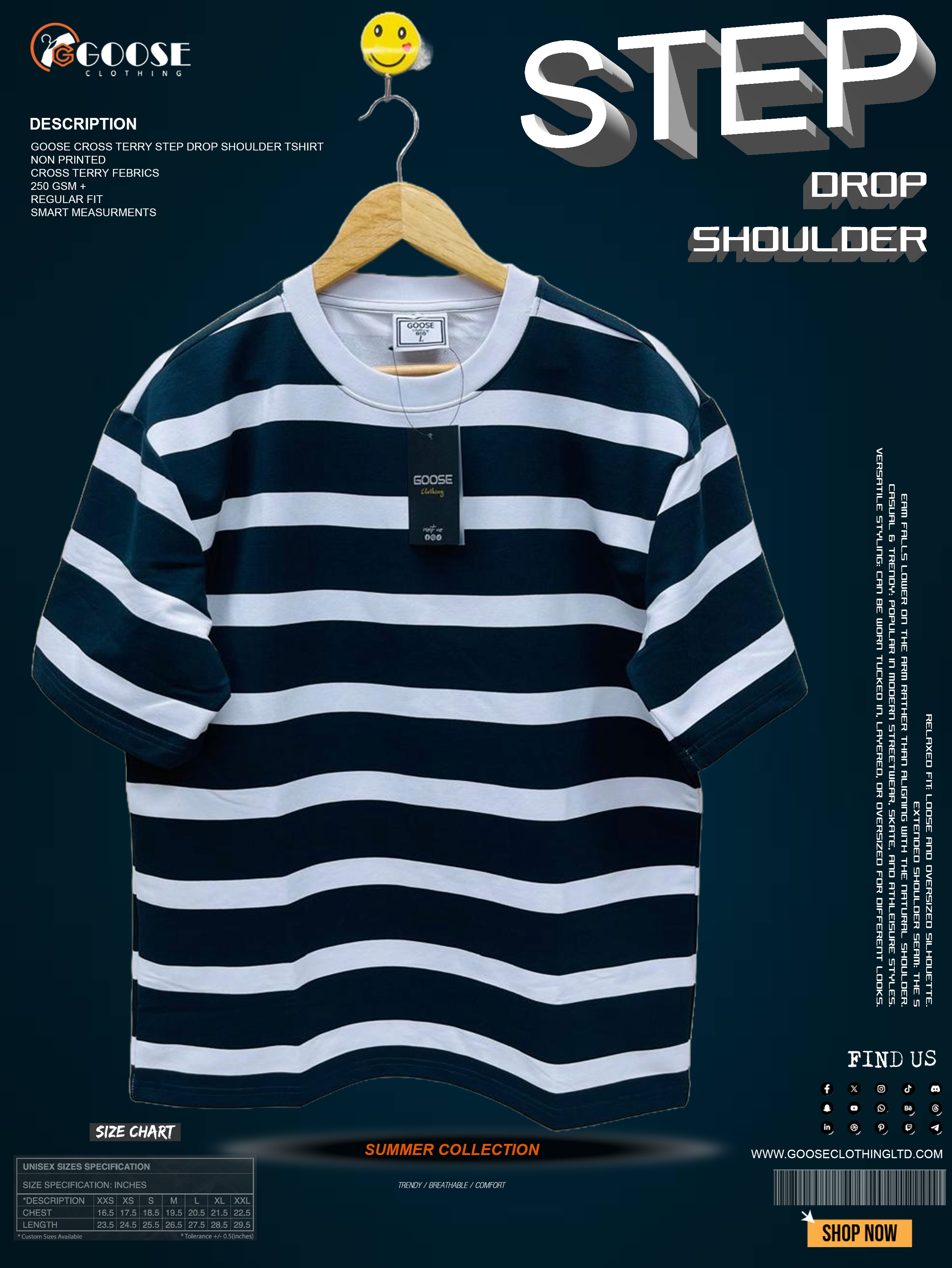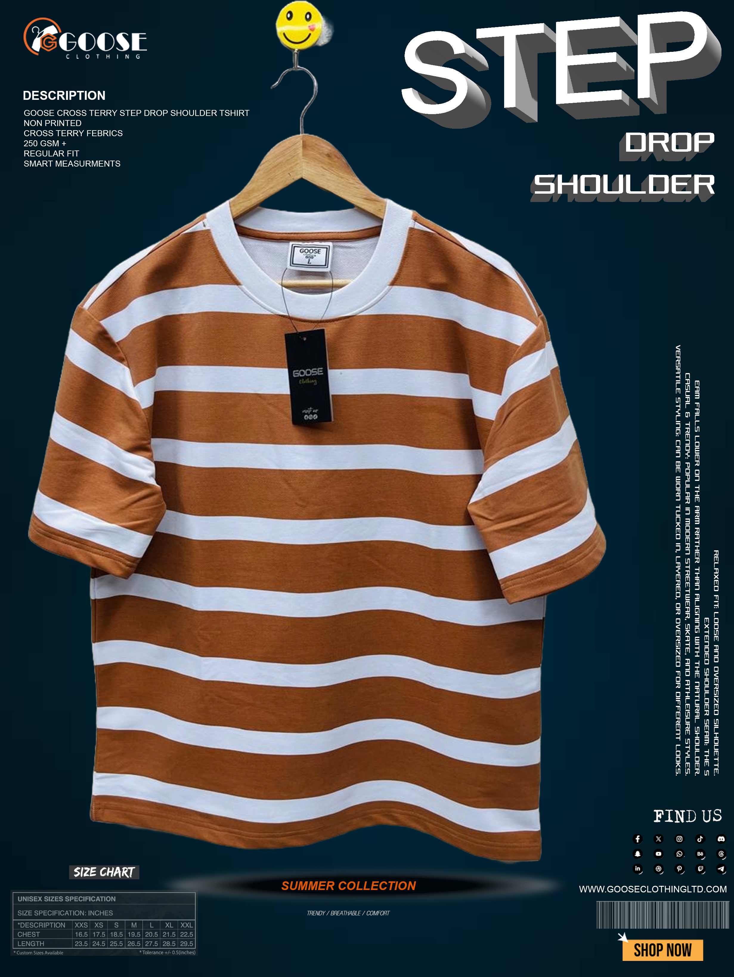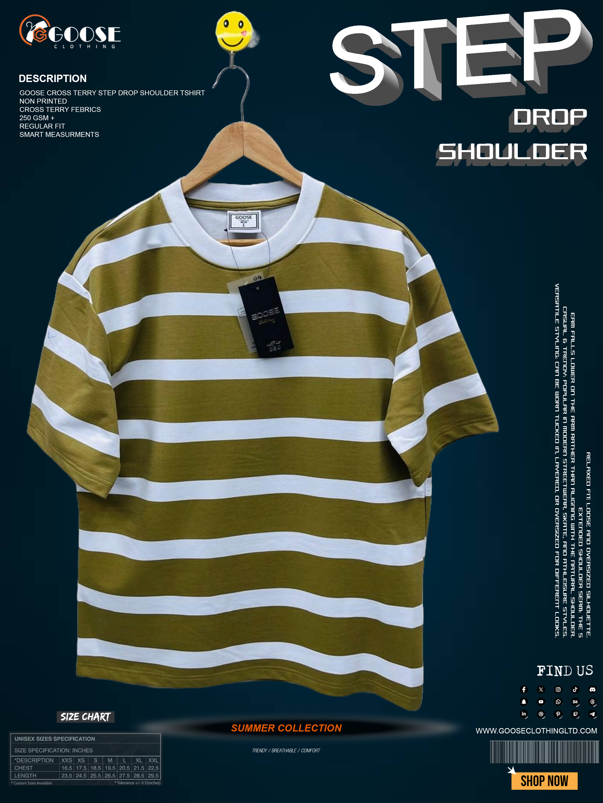 Item Name: Goose Cross Terry Step Drop Shoulder T-Shirt