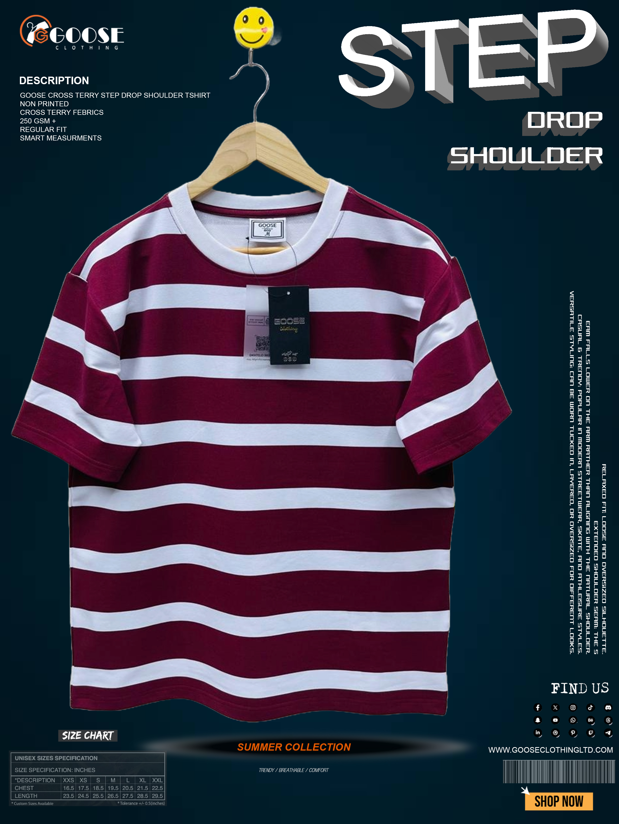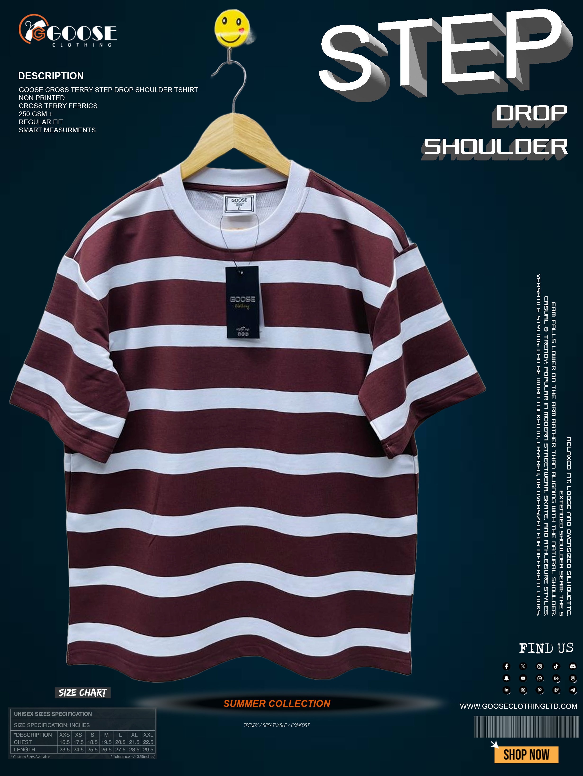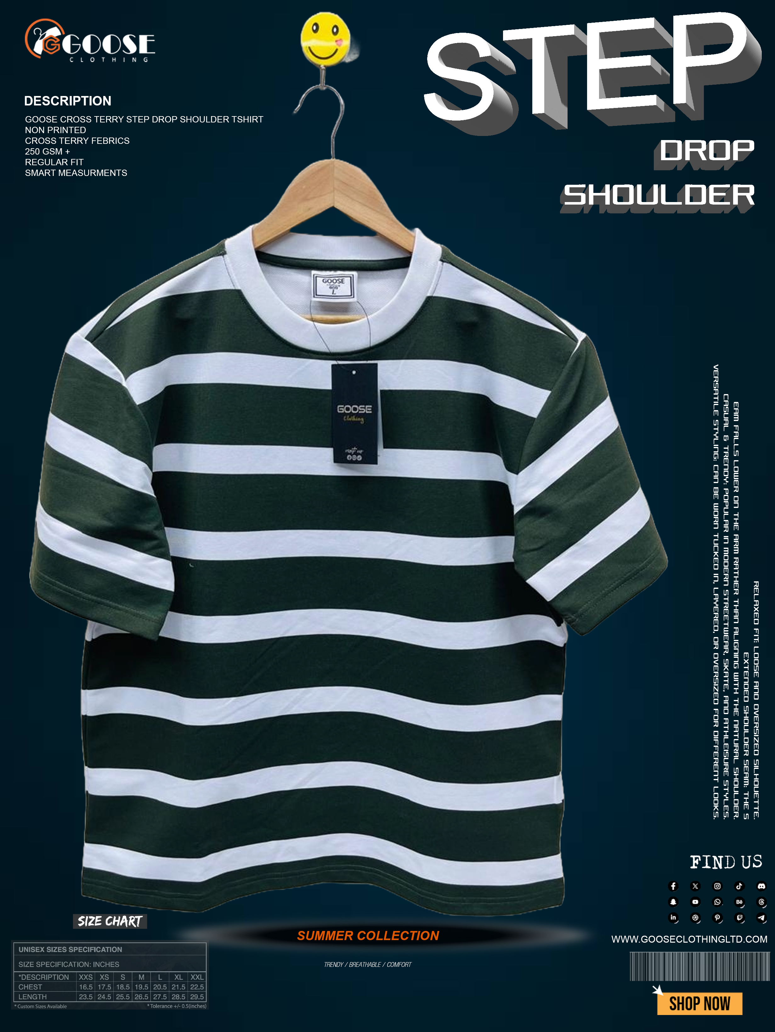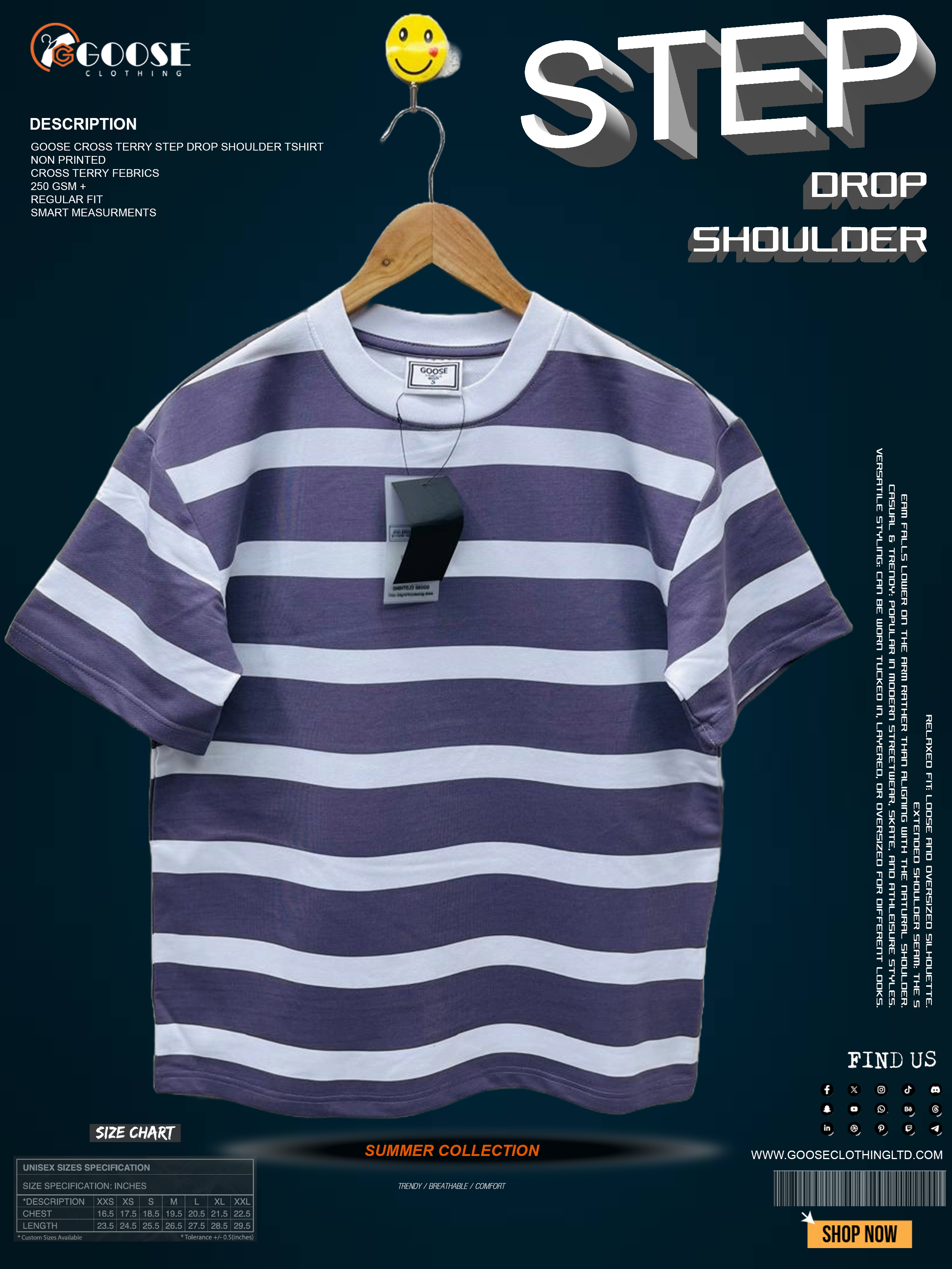 Item Name: Goose Cross Terry Step Drop Shoulder T-Shirt