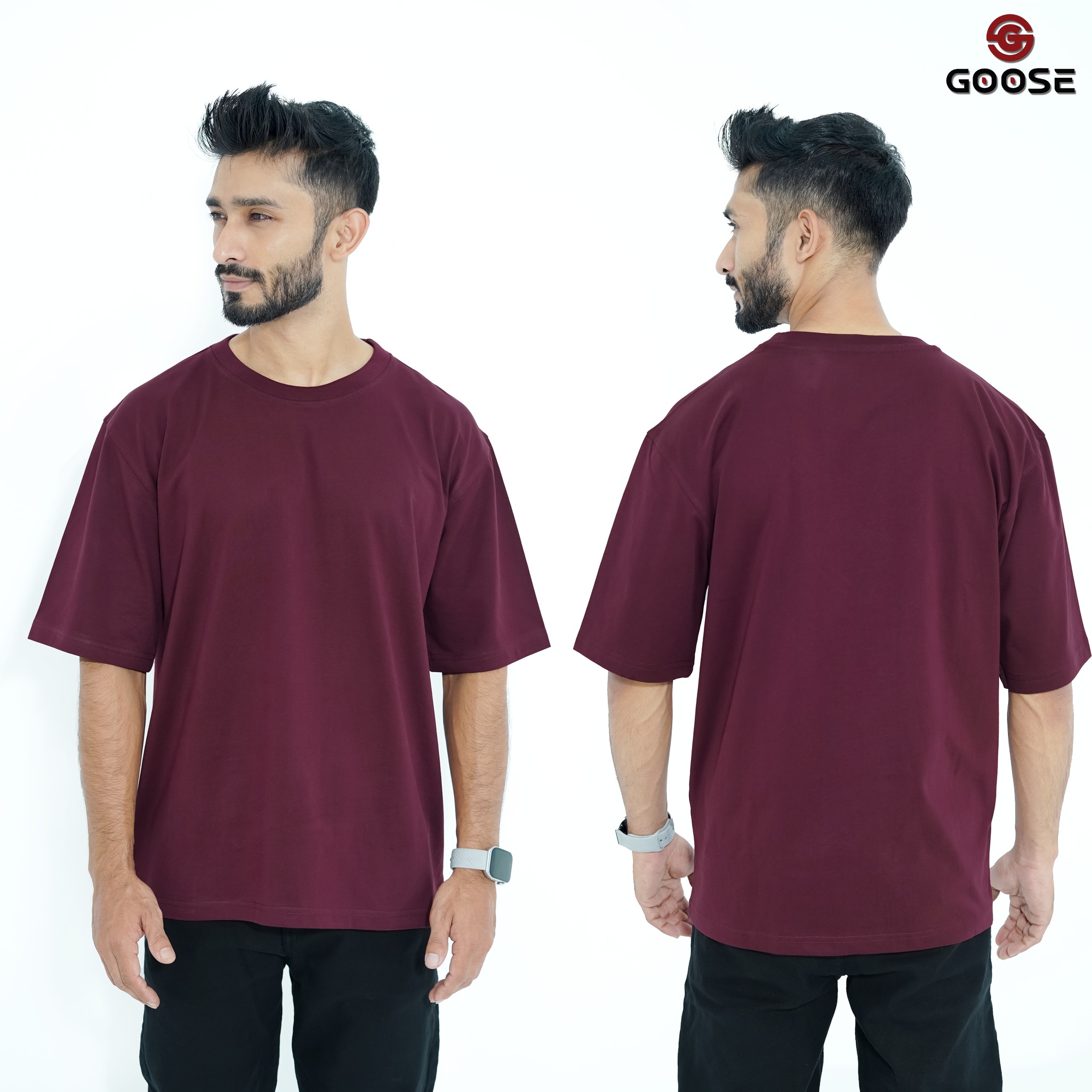 Goose Solid Flatted Single Jersey Dropshoulder Tshirt