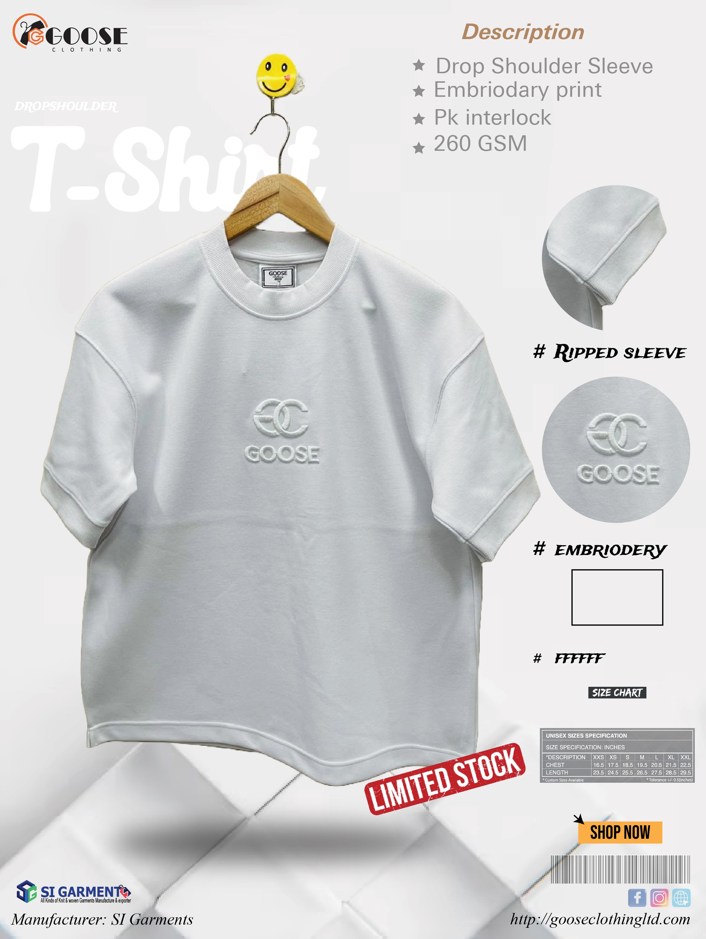 Goose logo Embriodary Solid Dropshoulder Tshirt