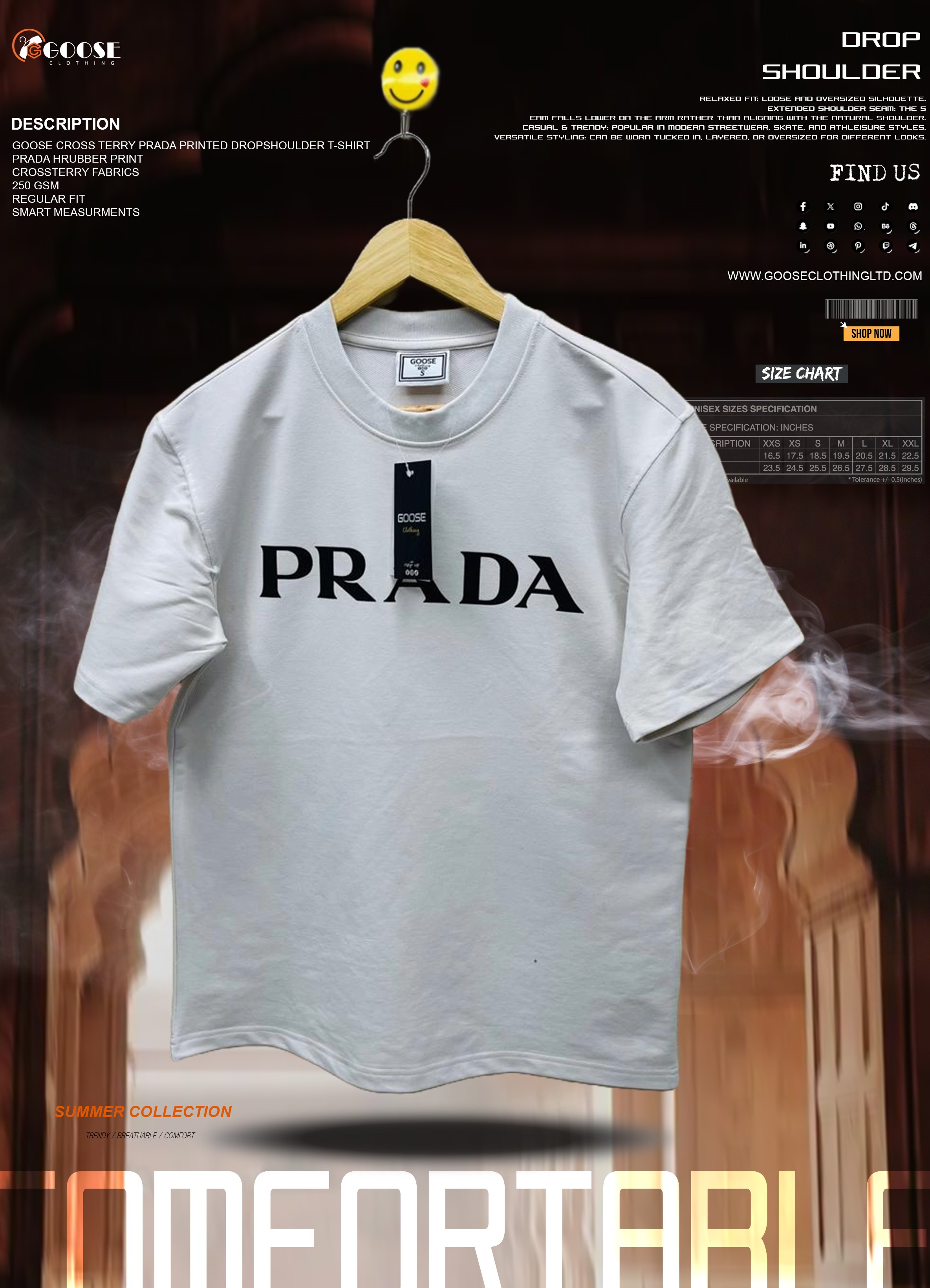 | Product Name | GOOSE CROSS TERRY PRADA DROP SHOULDER T-SHIRT |